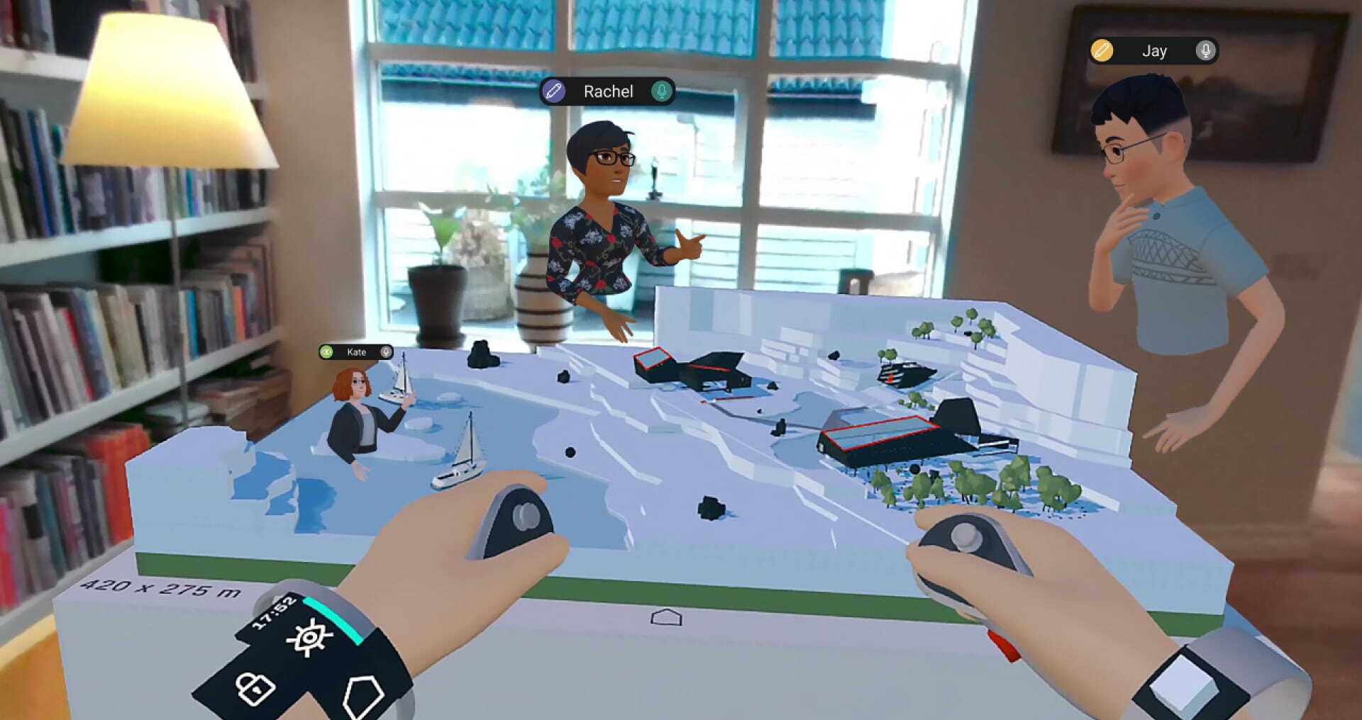 In the previous version of Arkio, avatars were pretty shapeless forms. We came up with the idea of adopting the Meta-style avatars, bringing some sense of personification to the individuals in a collaborative session. Moreover In the Oculus and Rift environments we added hands that are now "a real thing" that appear in the view and support for hand tracking is enabled. This was another massive update and helps anchor the user in the VR environment.